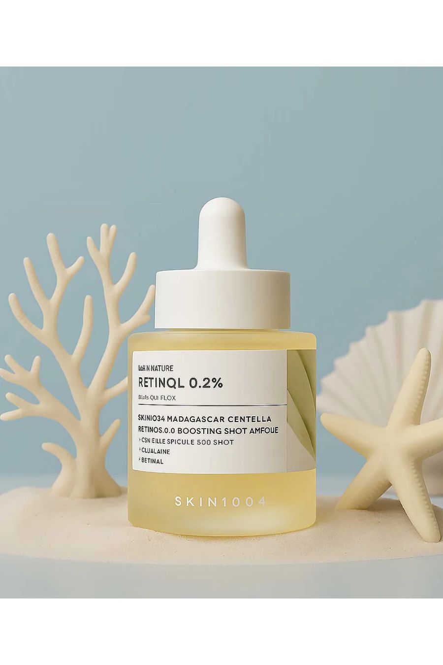 سرم ضدچروک و جوانساز رتینول ۰.۲٪ ماداگاسکار سنتلا اسکین 1004 – SKIN1004 Retinol 0.2% Boosting Shot Ampoule با حجم ۳۰ میلیلیتر